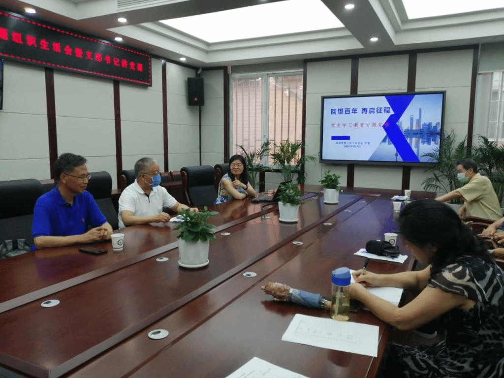 2021年7月7日下午,离退休教工党支部在纺工附楼205会议室,召开党史学习教育专题组织生活会。