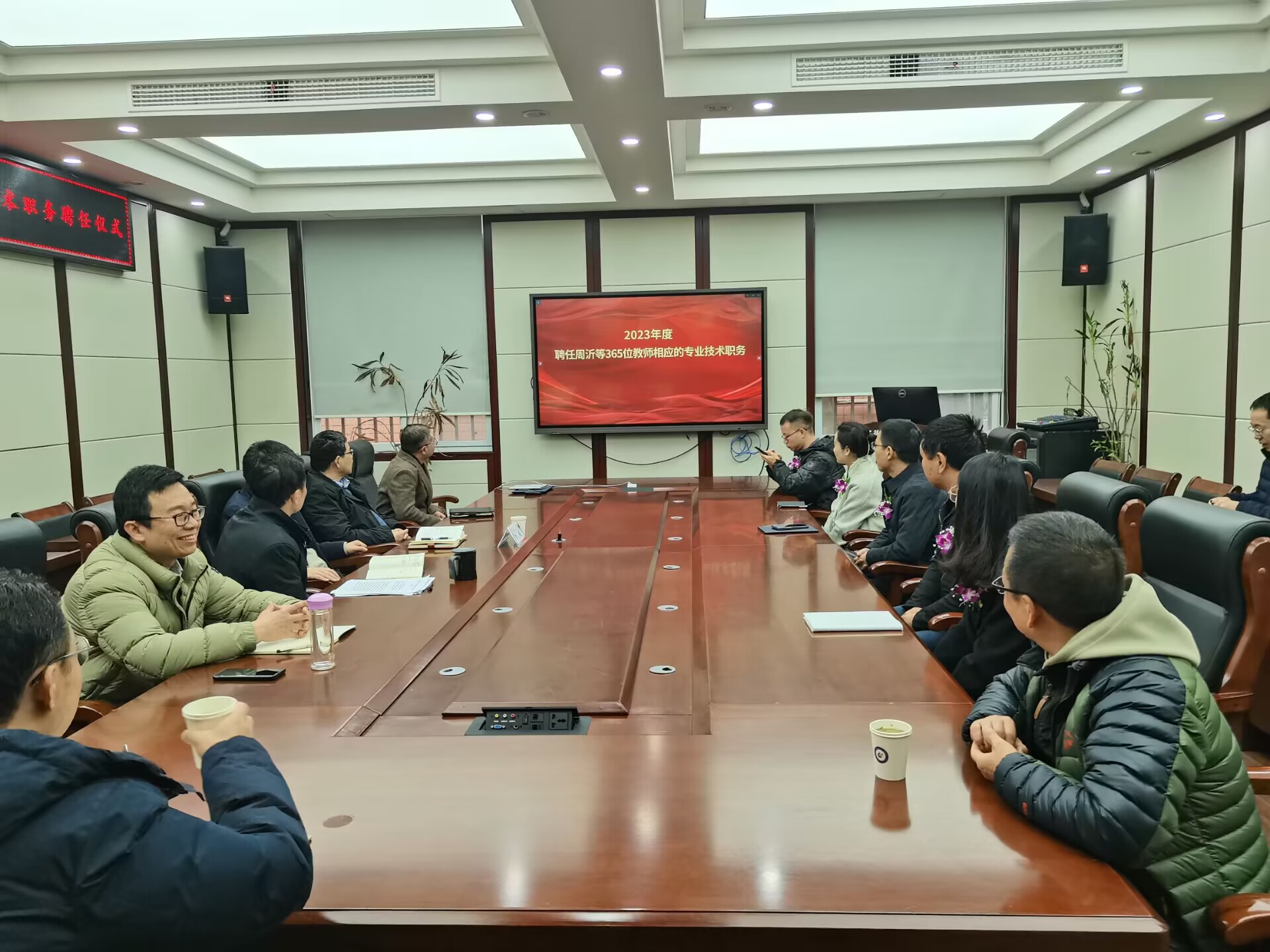 班子成员、2023年度新晋副高人员、各系所负责人及教工党支部书记参加本次会议。聘任仪式由李天富书记主持。